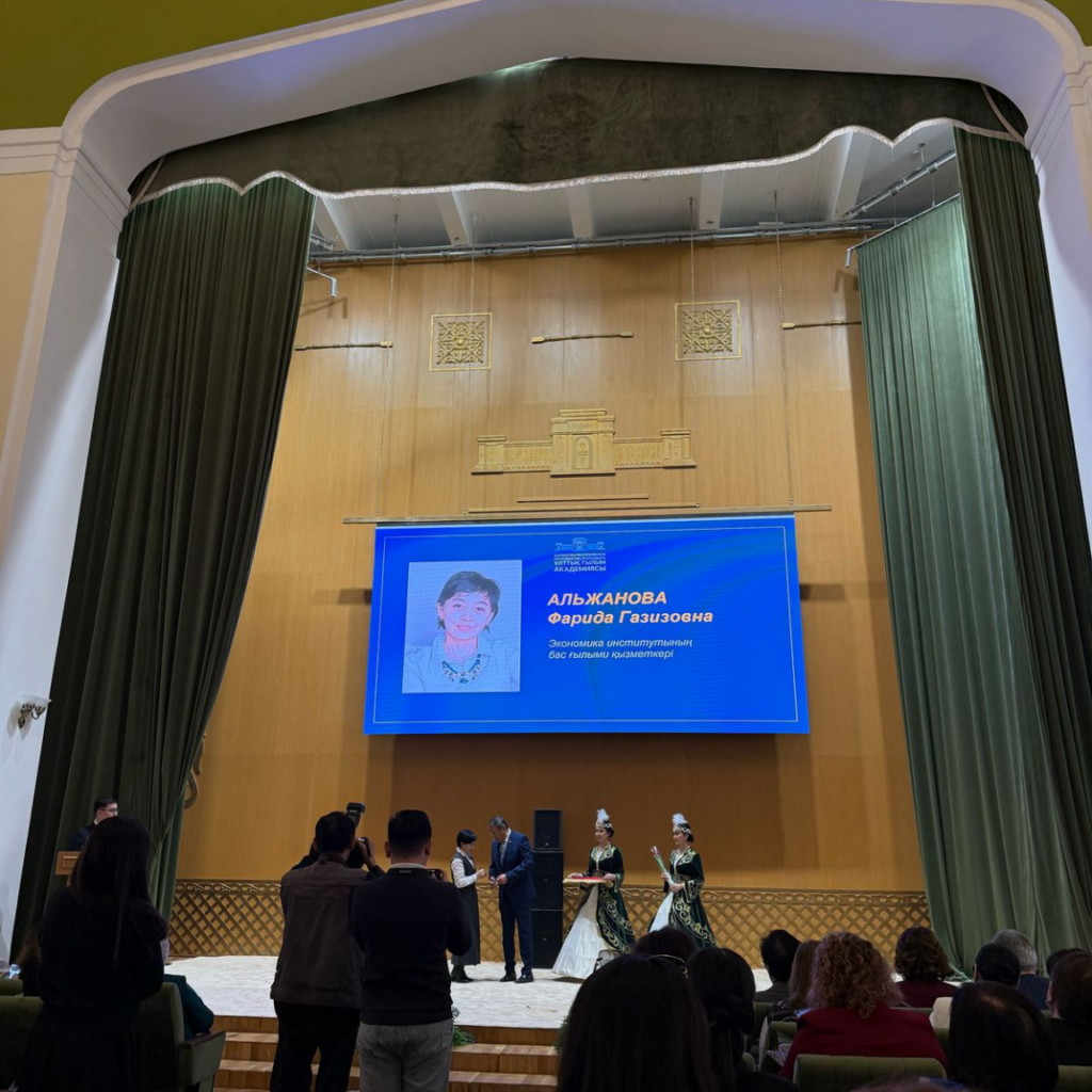 6 марта 2025 года НАН РК впервые провела торжественную церемонию вручения премии имени академика Н.Базановой для отечественных ученых-женщин. От Института экономики КН МНВО РК эту награду получила доктор экономических наук, главный научный сотрудник Института Альжанова Фарида Газизовна. Поздравляем Альжанову Ф. Г. с заслуженной наградой и желаем новых научных достижений и достигнутых высот!