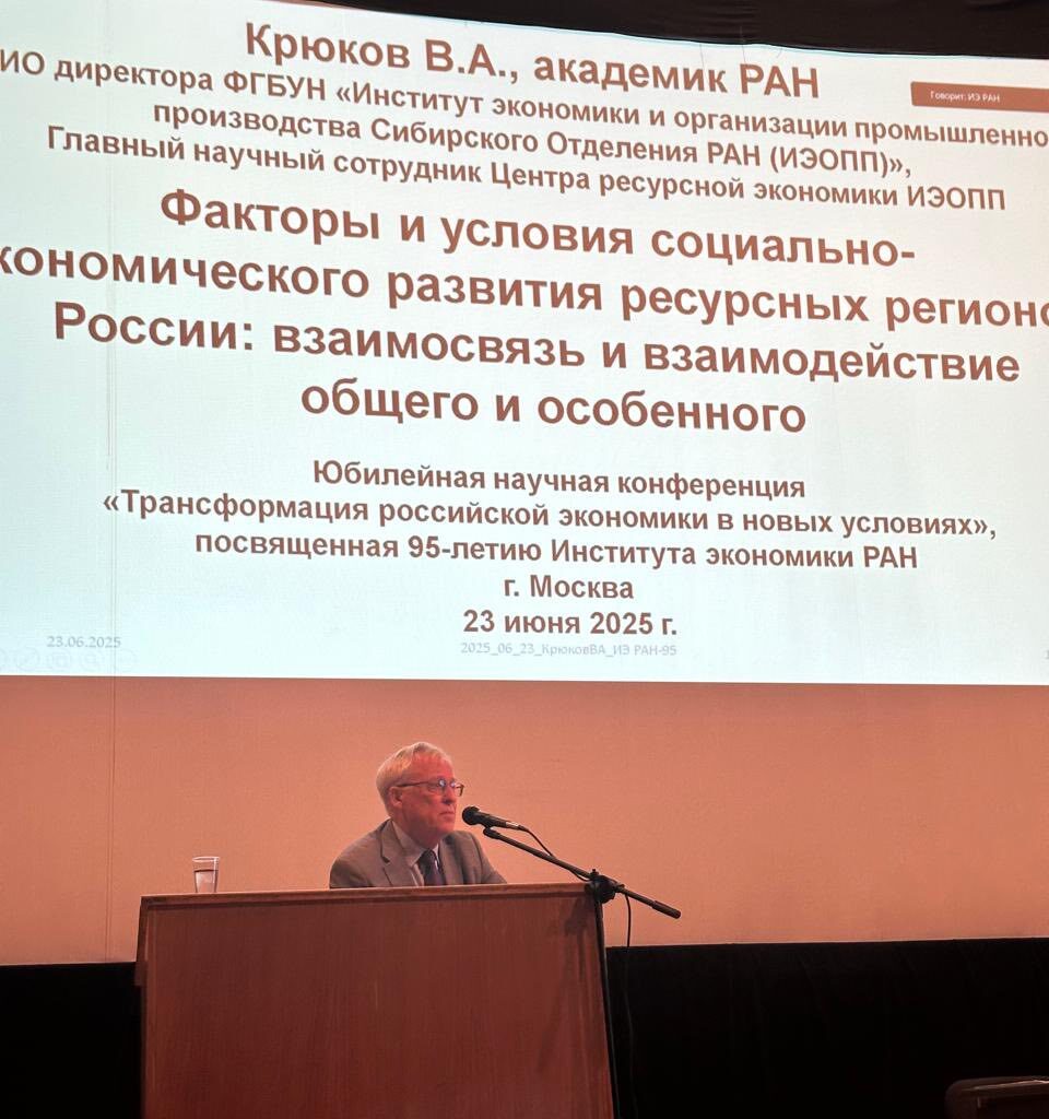 Генеральный директор института, д.э.н., профессор Садыков Е.Т. участвовал в юбилейной научной конференции «Трансформация российской экономики в новых условиях», посвященной 95-летию Института экономики Российской академии наук, 23-25 июня 2025 года в г.Москва.